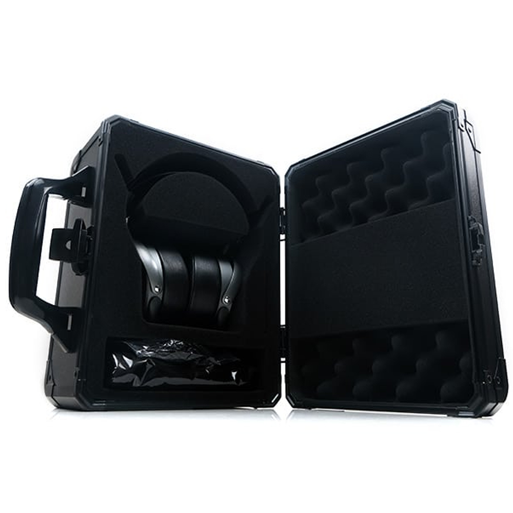 هنگامی که هدفون را میخرید، پکیج شامل موارد زیر است: کابل بافته شده (باسیم Y نوع braided)، هاردکیس مستحکم آلومینیومی و مناسب برای حمل و نگهداری از هدفون. کابل منقطع از هر گوشی به سمت کانکتور، از طریق اتصال یک جفت کانکشن mini-XLR به بدنه متصل می شود و دوام و کیفیت بسیار بالایی دارد.