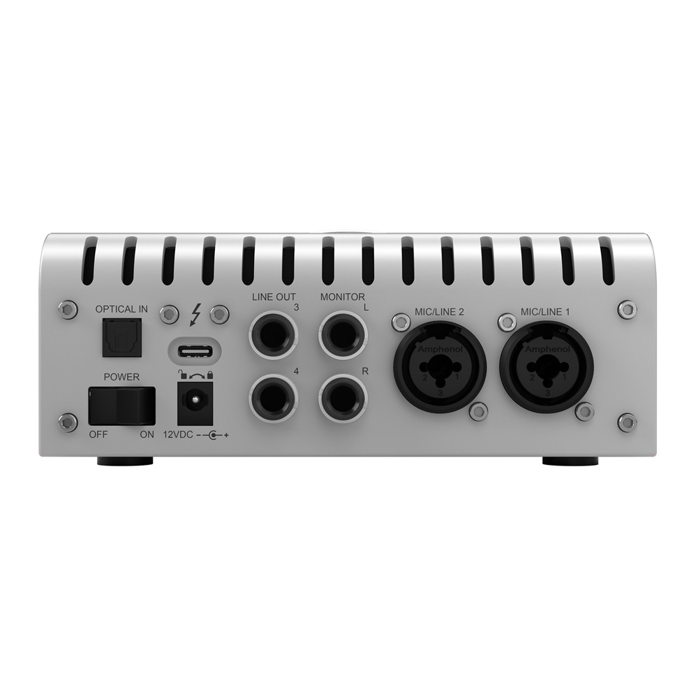 کمپانی یونیورسال اودیو ورودی اینسترومت (Hi-Z) این کارت صدا را در حد غیر قابل تصوری کم سرو صدا و بدون نویز زمینه طراحی کرده که میتوان توسط کنترل پنل نرم افزاری و شبیه سازهای خارق العاده، صدای آن را به امپلیفایر های گران قیمت و وینتیج از قبیل امپلیفایر گیتار الکتریک Fender سال ۱۹۵۵، امپلیفایر لامپی گیتار الکتریک Marshall سال ۱۹۵۹، امپلیفایر Ampeg مدل B-15N یکی از برترین های مناسب برای گیتار باس، و یک پدال Ibanez مدل Tube Screamer مجهز کرد. این کارت صدا ازطریق پورت تاندربولت ۳ به سیستم کامپیوتر MAC یا تحت ویندوز شما متصل می گردد و با توجه به ویژگی های منحصر به فرد خود از قبیل پری امپ های میکروفون کلاس A بدون هیچگونه نویز و با سطح داینامیک بالا ، ورودی اینسترومنت با حداقل نویز، ورودی دیجیتال از نوع اپتیکال جهت اضافه کردن ورودی و خروجی آنالوگ به کارت صدا، مجهز به پیشرفته ترین میکسر داخلی و DSP های قدرتمند این کمپانی (UAD-2) قابل استفاده است.
